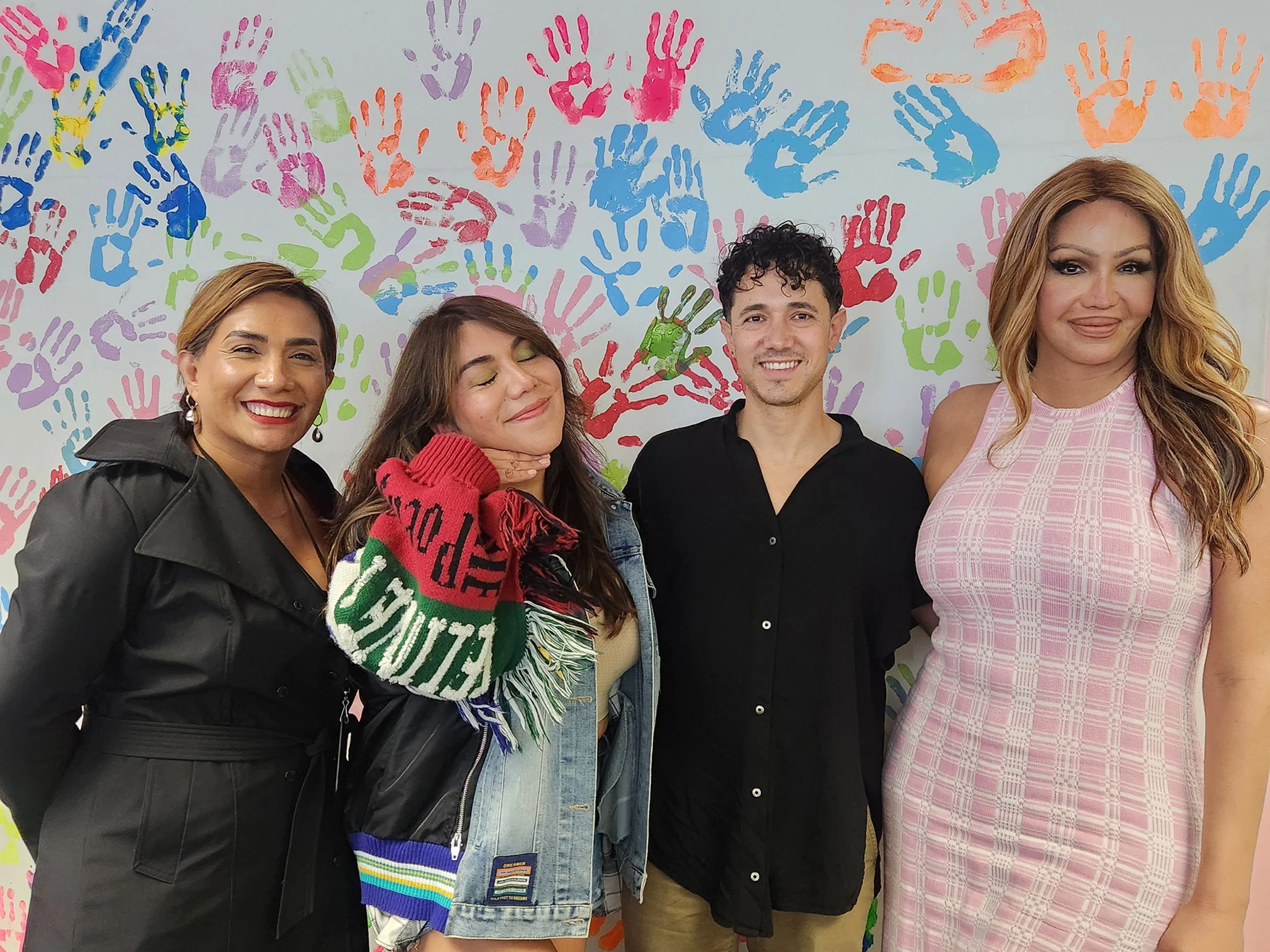 The TransLatin@ Coalition leaders and Diego González-Medina meet with Mexican trans activist Natalia Lane (second from left) in February 2025. Liminal Works’ mission is to empower grassroots organizers and activists with digital products and services to protect themselves and better navigate digital platforms. Photo courtesy of Liminal Works
