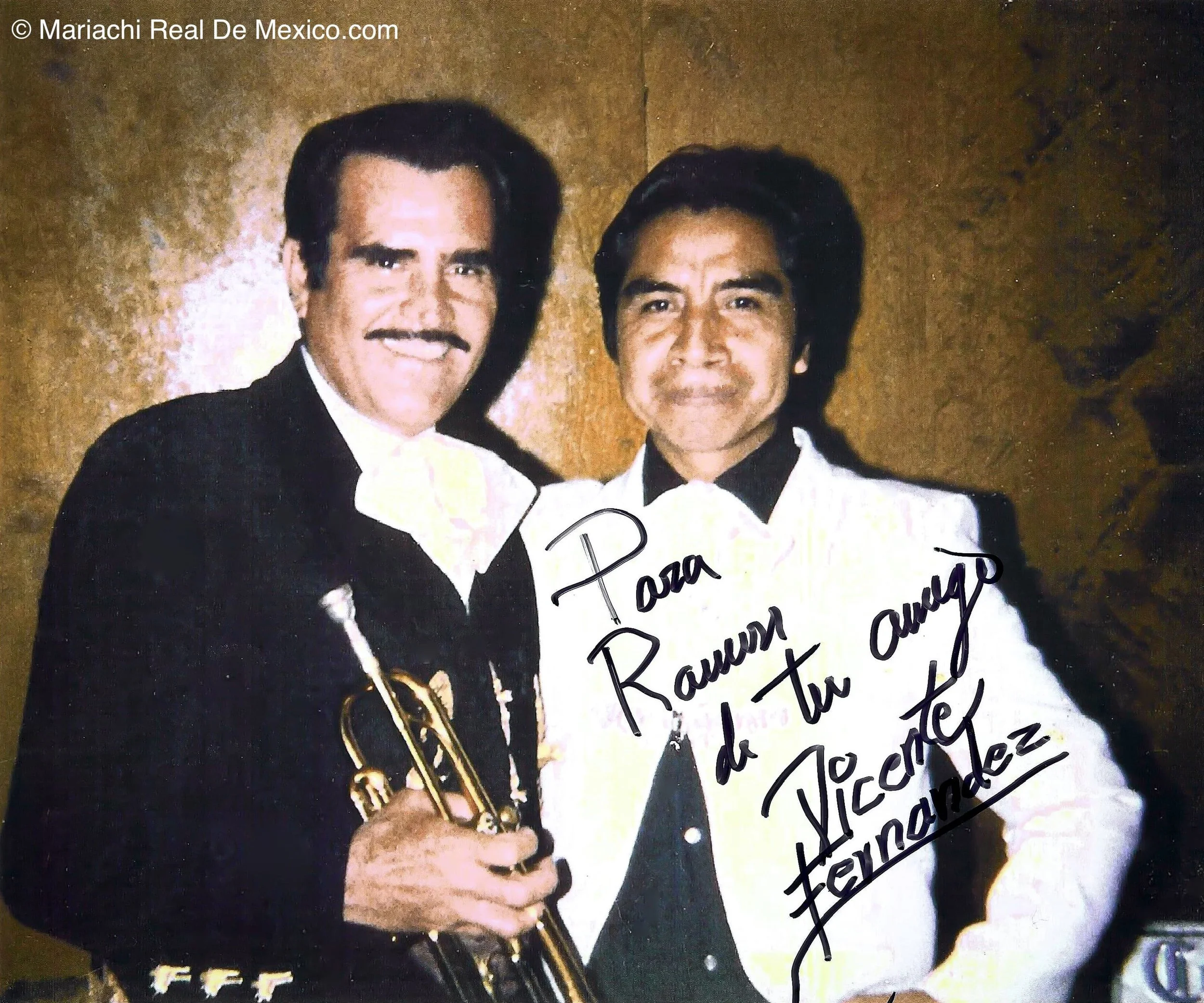 Mariachi legend Vicente Fernández (left) and Ramon Ponce Sr. (right). The photo reads: "For Ramon from your friend Vicente Fernandez." Photo courtesy of Mariachi Real de México