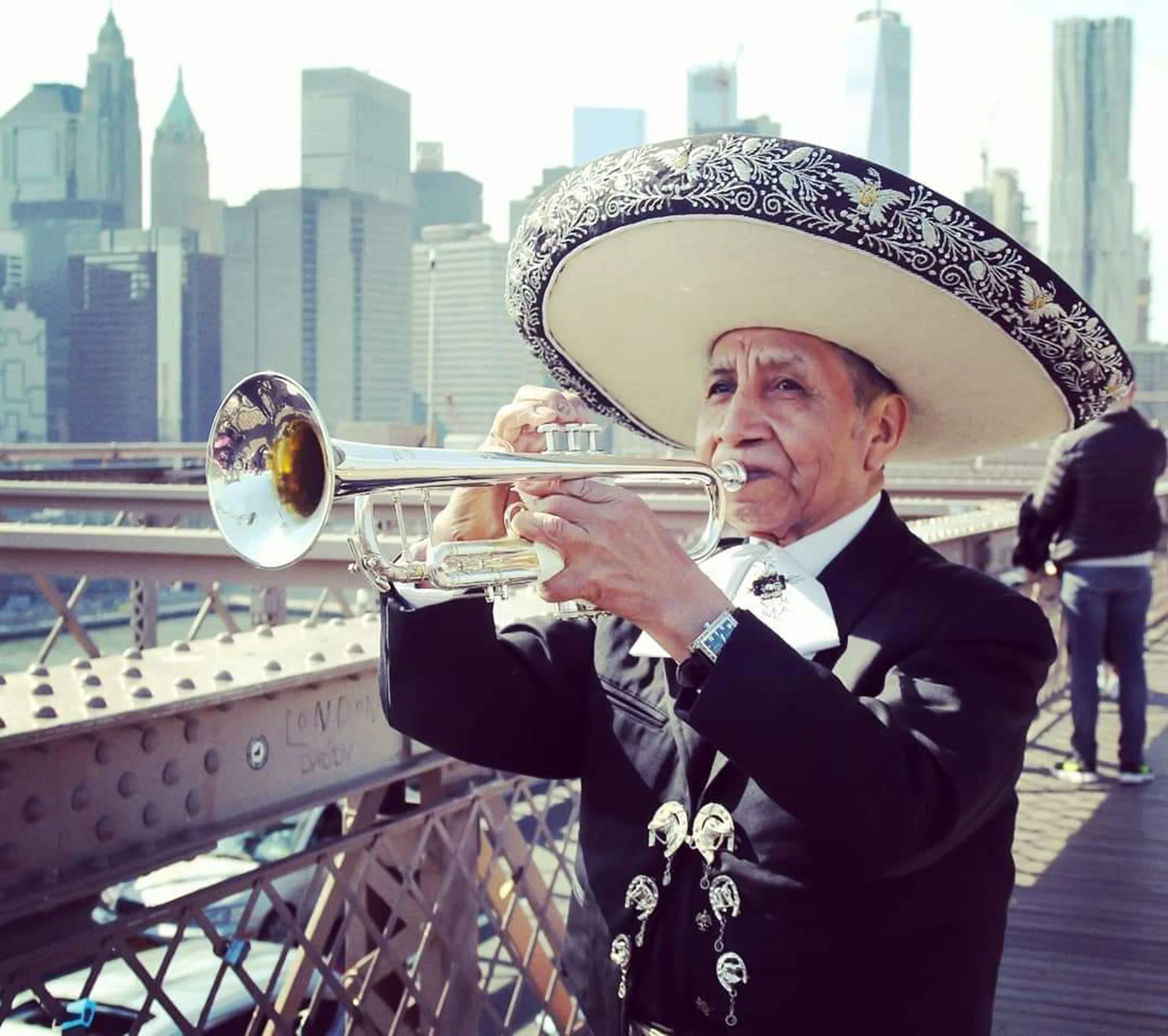 Ramon Ponce Sr., founding member of Mariachi Real de México, on the Brooklyn Bridge. Photo courtesy of Mariachi Real de México
