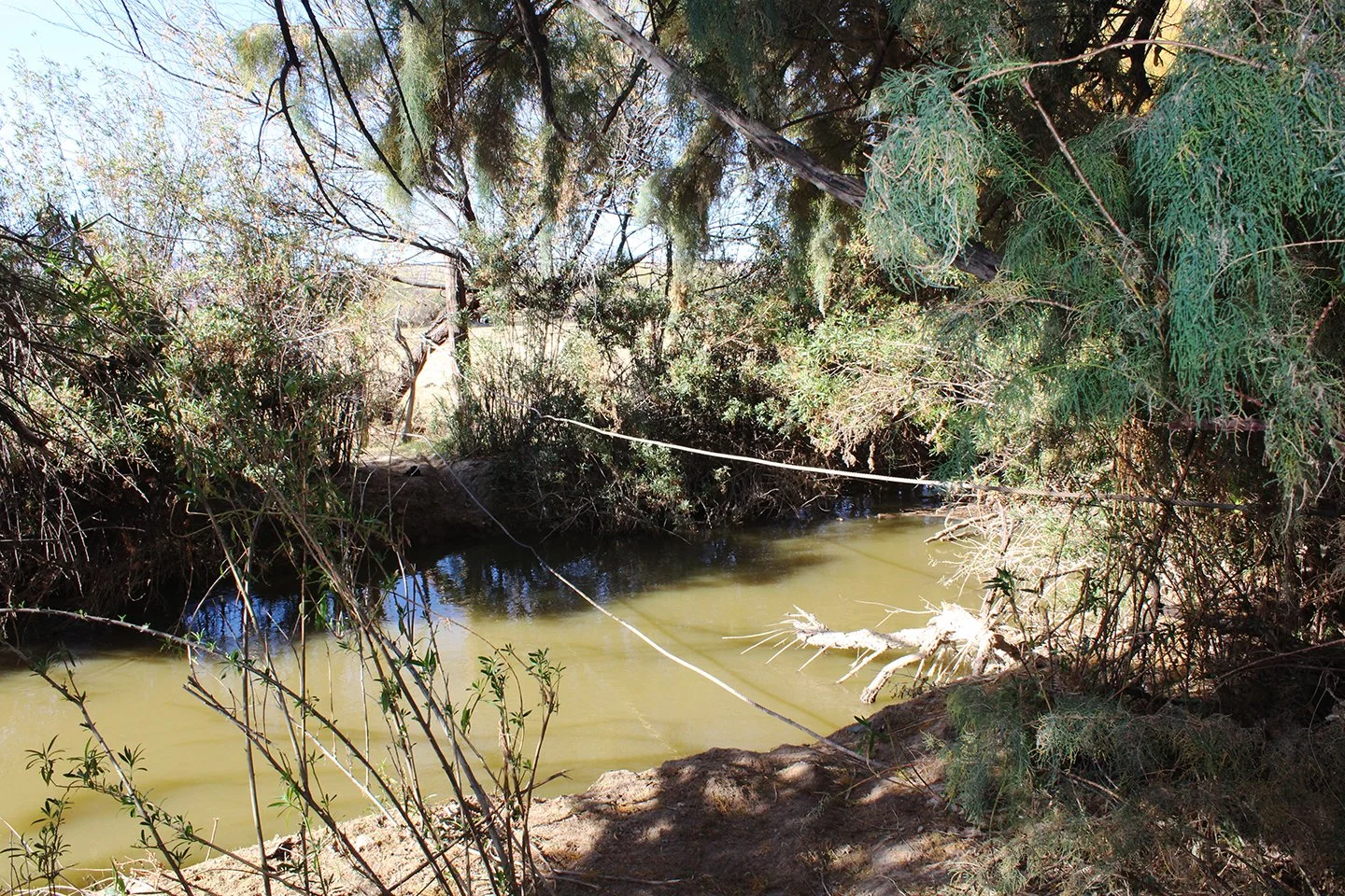 A rough dirt and grass road at the edge of town leads to the old river crossing. On the way, an elderly man with a rough beard and a straw cowboy hat was hiking toward Candelaria. He said he lived in San Antonio del Bravo and didn’t recognize the names of Peña or Alvarez.