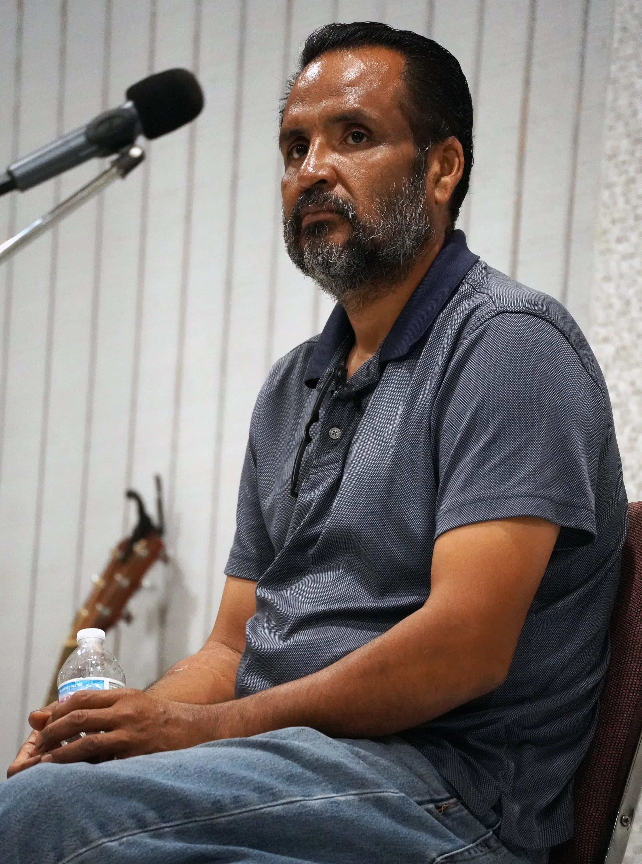 Javier Ortiz speaks about his diagnosis at Iglesia Cristiana Ministerio De Salvación in Laredo, Texas, on April 5, 2024. Photo by Sean Jimenez/South Texas Project