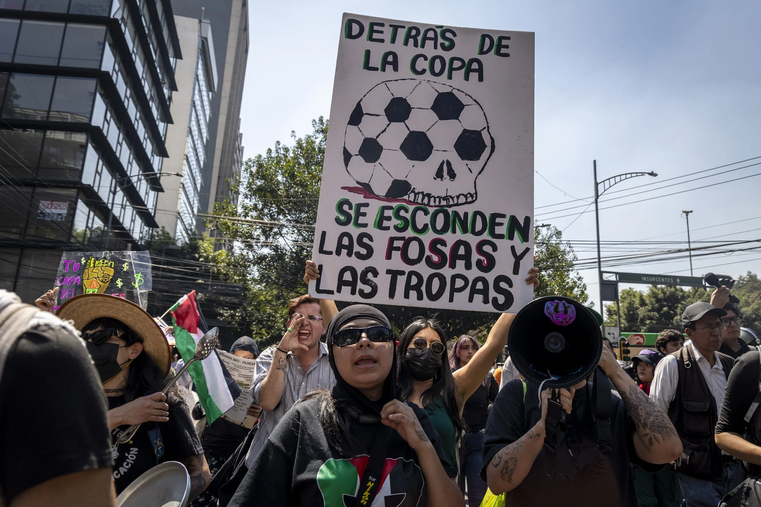 En medio de consignas y carteles, algunas protestas han acusado al Mundial de ser telón para ocultar la crisis de inseguridad, las desapariciones y el desplazamiento de comerciantes en el país.