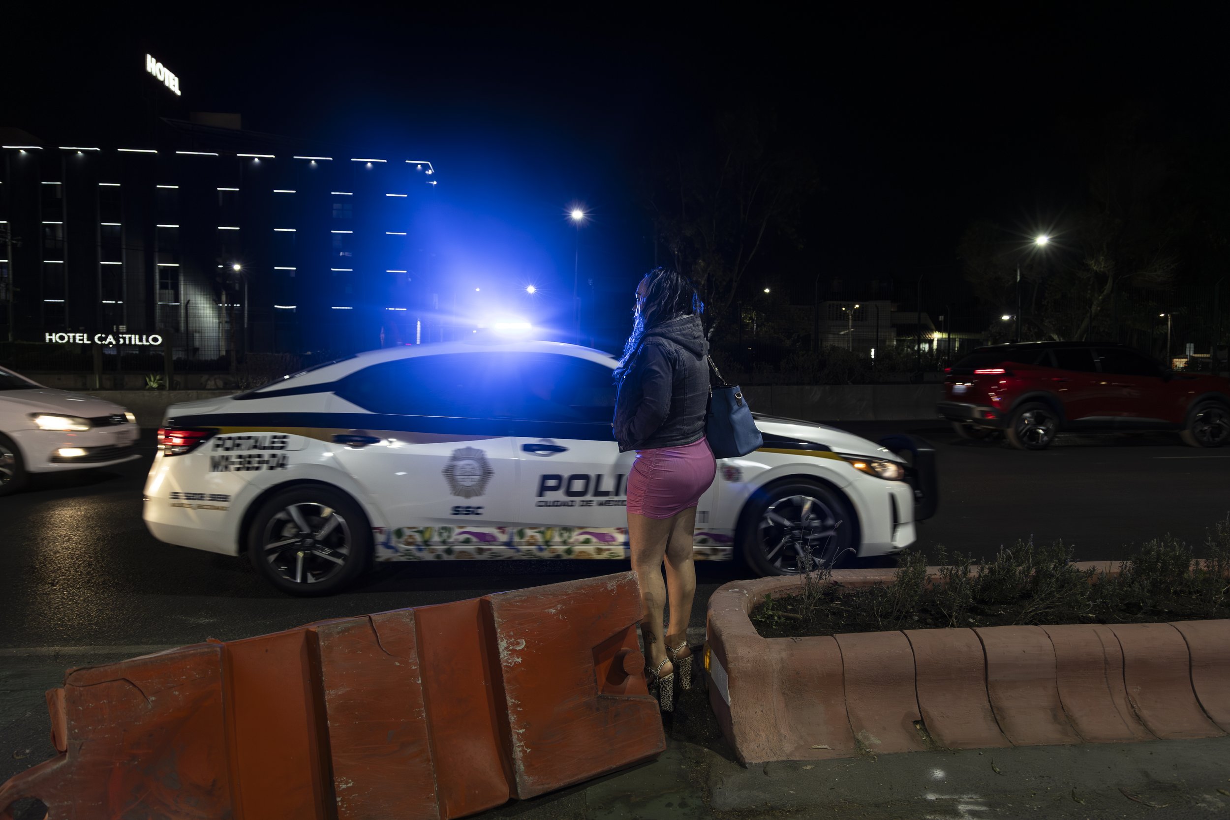 Monserrat, trabajadora sexual, se preocupa por la falta de apoyo y diálogo con las autoridades mexicanas durante las obras de la ciclovía. La policía y los trabajos nocturnos han reducido la afluencia de clientes en varios puntos de la calzada.