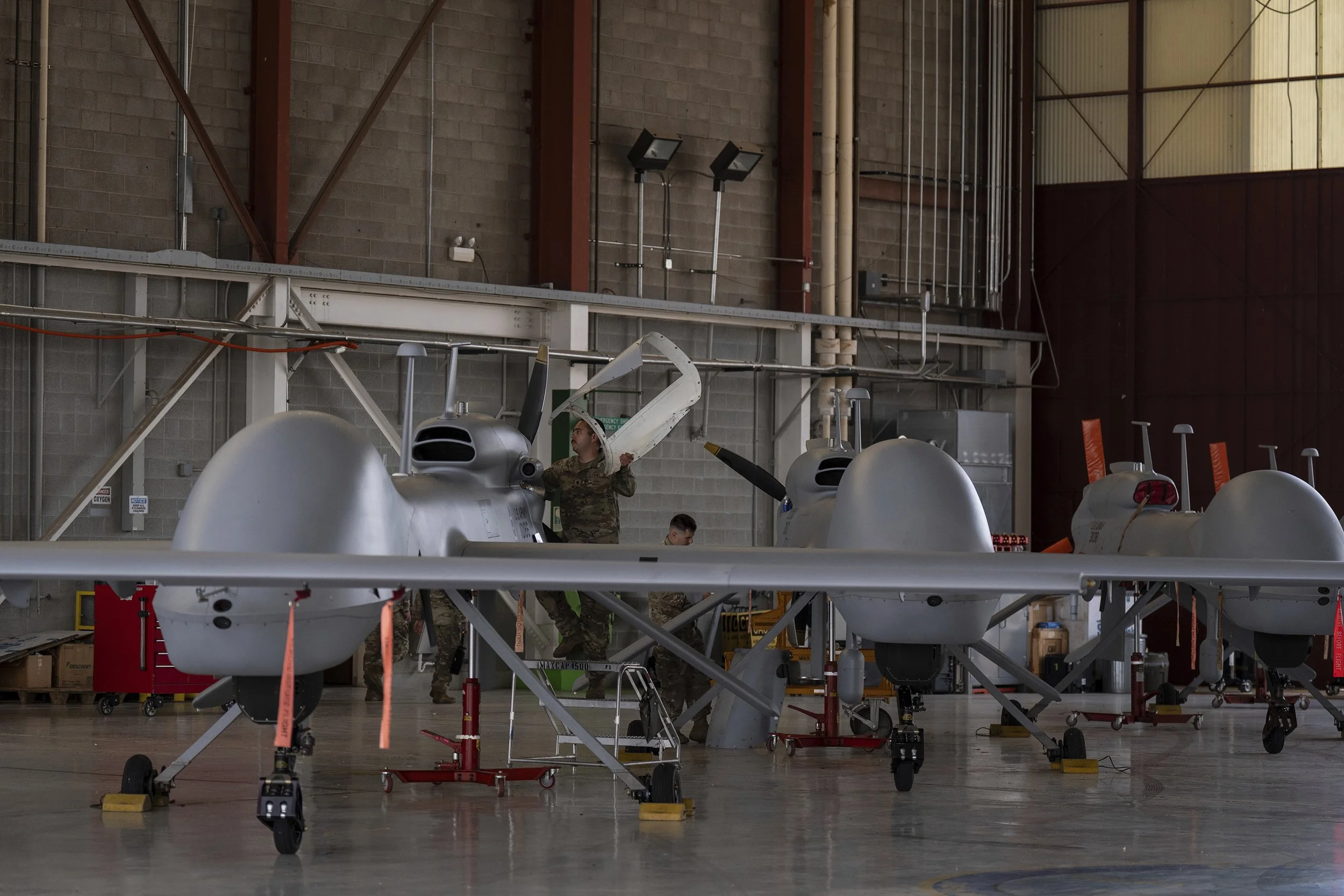 U.S. Army personnel perform maintenance on long-range drones at Fort Huachuca in Sierra Vista, Ariz., Tuesday, July 22, 2025. Photo by Jae C. Hong/AP Photo