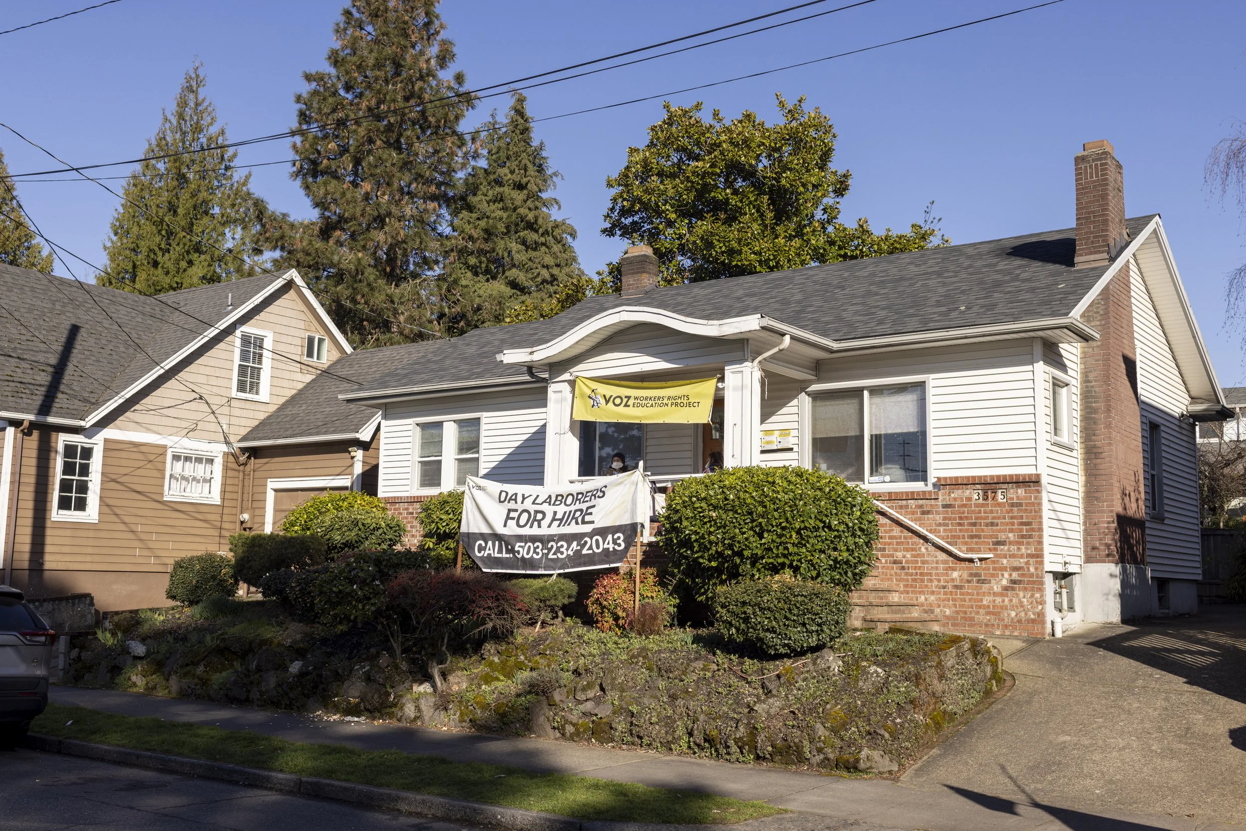 Voz Workers Center, where volunteers stand watch outside the front door, on February 27, 2026 in Portland, Oregon. Photo credit: Celeste Noche / Fi2W.