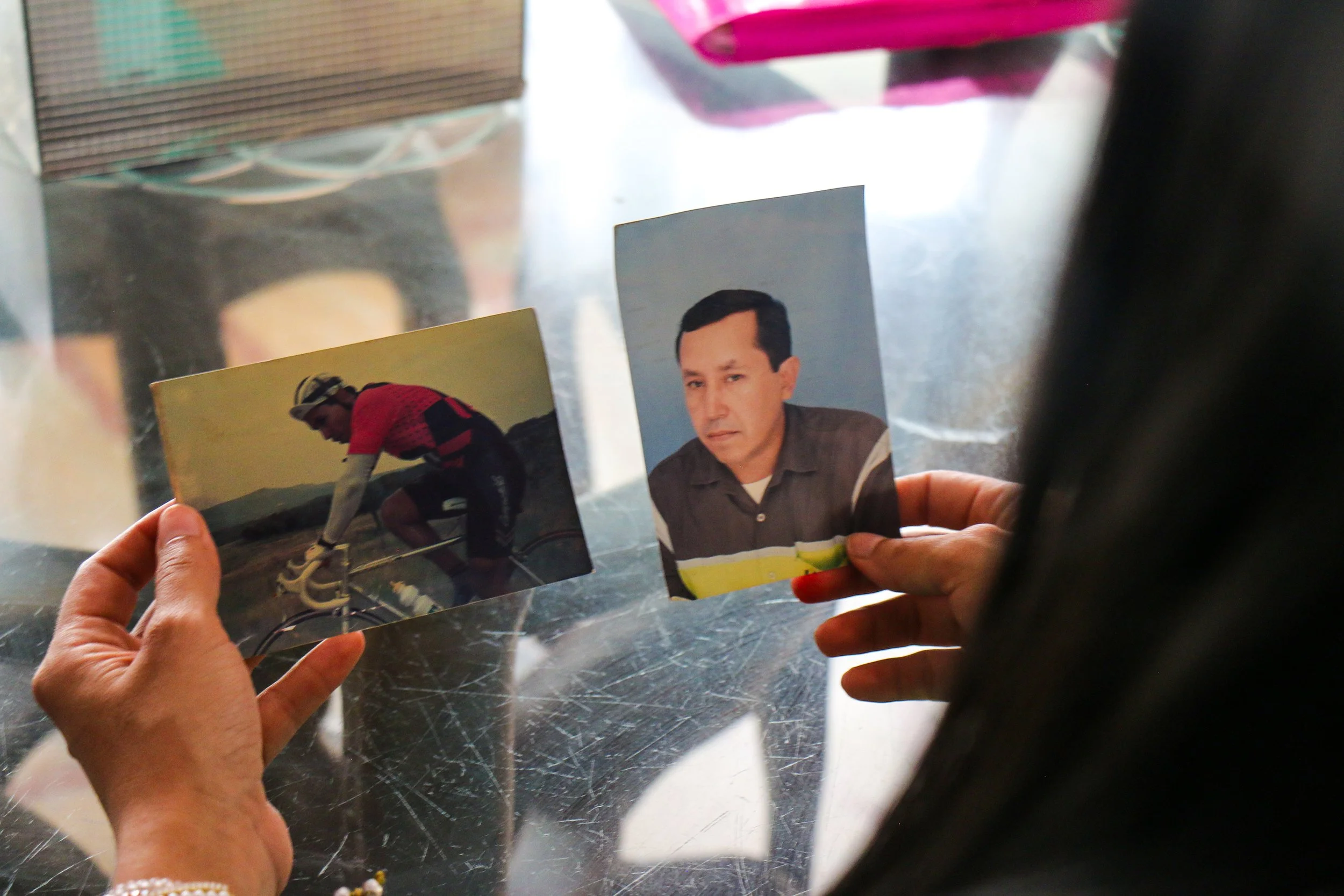 Ángela Cordón looks through some of the last photos taken of her father. Photo by Juan Pablo Pérez Burgos for palabra